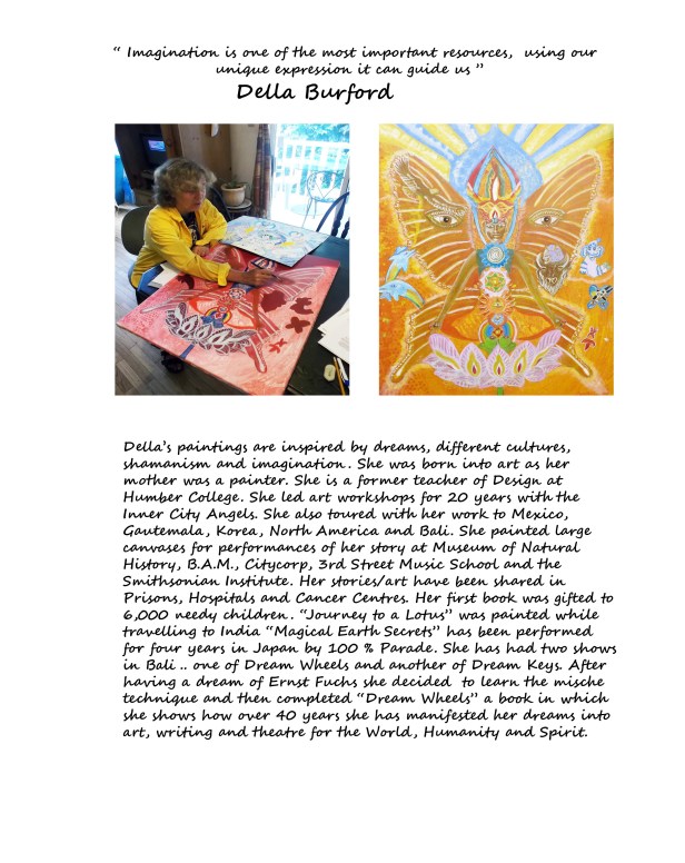 So, I thank you all for being Dream and Creative Friends. You all have been totally inspirational as so many other family and friends have been to me in the forty years of recording my dreams on my Dream Wheels. I will be featuring various Artists and Dreamers and Events who fit into the theme of the issue. I am in gratitude to so many for letting me include them in the Create a Dream Blog. All Follows, Comments or Likes are so appreciated. Artistic, dream and positive energy are all part of this offering for the world. The Stories and Art are for You, Others, and the World.