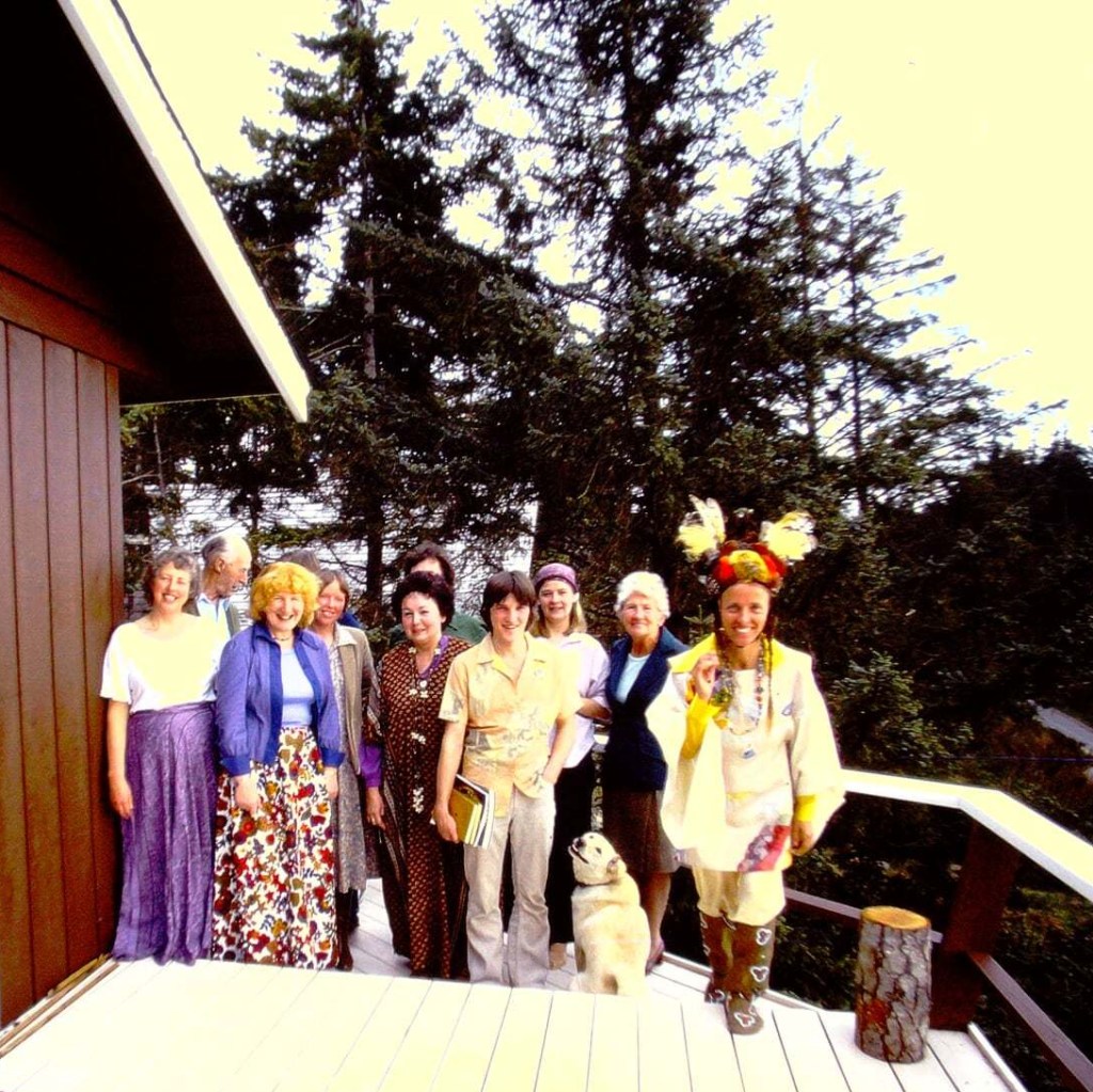 | Milestones: Summary 1980 “New Sight” Went to Color and Healing workshop and met a Shaman – Star Bear, who said I should tell “Magical Earth Secrets” at the workshop. I hesitated as didn’t have my Bird Helmet.. he took me in a room with many sacred feathers used in the ceremony… he said, “will these do” – Dale did bring my Bird Helmet and I did tell the story of “Magical Earth Secrets” – for the first time. ( See photo below) When he saw the painting of the Sun Ray ( which was my interpretation of the Ancient Dale saw) – he told Dale after he wanted to mentor him and I also apprenticed with him. He helped us with a Vision Quest later. I was draping the headdresses for Elemental Dodo and Rainbow Dolphin. | People: Dale Bertrand Norah Burford Merian Soto Tedrian Chizik Ava Stone Brenda Parres Jerry ShrairRe | Dreams: “ I am the Tibetan horn” “Told must go on Vision Quest.. ..to stay overnight on the Kootenay Plains” “ If empty will remain happy” “Golden light pouring from head, my Bird Helmet, like a funnel” “encouragement from dream guides to change colors at will in my dreams”- felt later this was Star Bear helping me. Research: Diary Photos Paintings Dream Wheel | Results: Performance at Sloan Kettering Hospital. N.Y.C. Dodoland performed at Museum of Natural History N.Y.C. Workshop and Storytelling by Della at Gosford school and many schools thru the Inner City Angels. Set up Dodoland Activity Centres Storytellings of Magical Earth Secrets. Knew it was for planetary growth. Tedrian was starting to do performances in New york. .. Cuban Refugees, Handicapped Festival Museum of Natural History, Amerindian Centre, Columbia University, Dale and I storytold at the Nelson Fair. | |