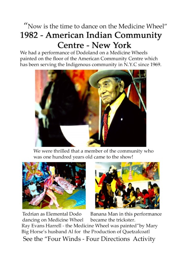 We had a performance of Journey to Dodoland on a Medicine Wheel painted on the floor of the American Indian Community Centre which has been serving the Indigenous Community in New York vity since 1969. We were thrilled that a member of the community that was one hundred years old came to the show. Dodoland has been destination on the internet internet since 1995 and is free to anyone that wants to go and been created as an act of love.