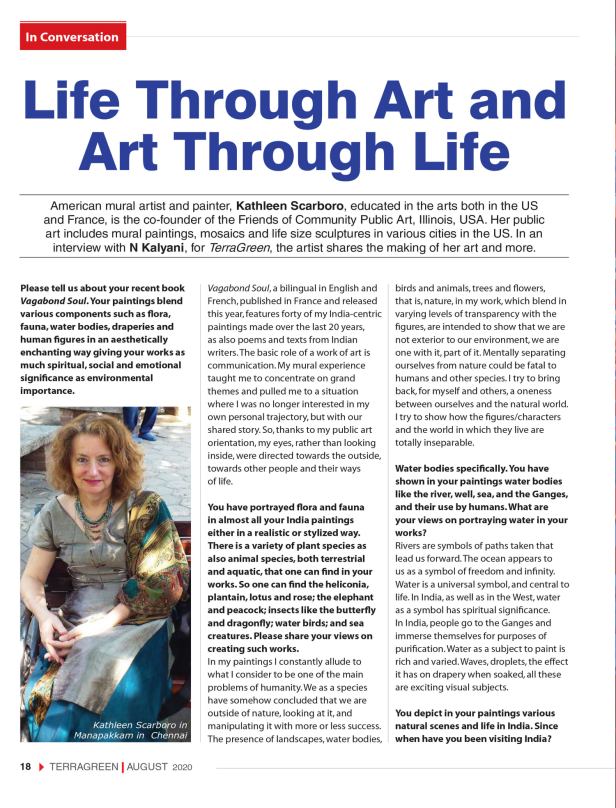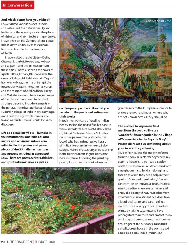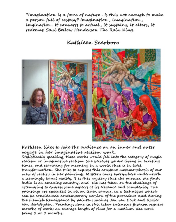Dale Bertrand and myself ( Della Burford) Having been to India twice and also loving we congratulate Kathleen on her latest book and paintings. I will post the article in conversation with Kathleen Scarboro in Terra Green below the photo from the book ‘Imagination Reigns” .