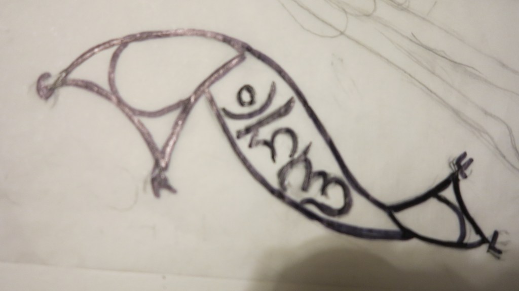 People were shown how to make them. I felt a little different approach as thought of a symbol that meant so much to me which has mostly vowels in it. Vowels open the throat and to me are sacred and magical. I thought of the mantra “Om Mani Padme Hung” .. which as the Dalai Lama has said shows both altruism and wisdom and the combination of the two. “Hung” is particularly powerful to me as it is used in Dream Yoga to open the heart chakra.