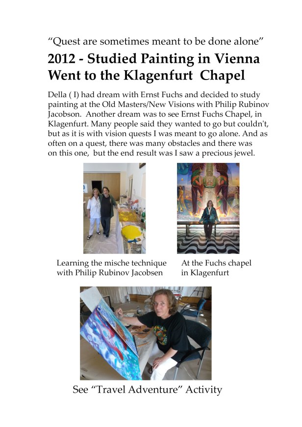 Another dream was to go to the Ernst Fuchs Chapel, in Klagenfurt. Many people said they wanted to go but could’nt and in the end realized it was a Vision Quest and I was meant to go alone. As often on Vision Quest there are many obstacles and I have shown these in a video I made. But in the end saw a precious jewel.