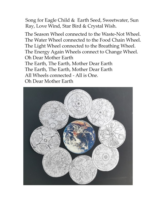 When Eagle Child finds the Magical Earth Secrets it flies to space and sees the planet Earth from above.. it realizes all is one. It see all the people doing what they can do to love and take care of the earth.