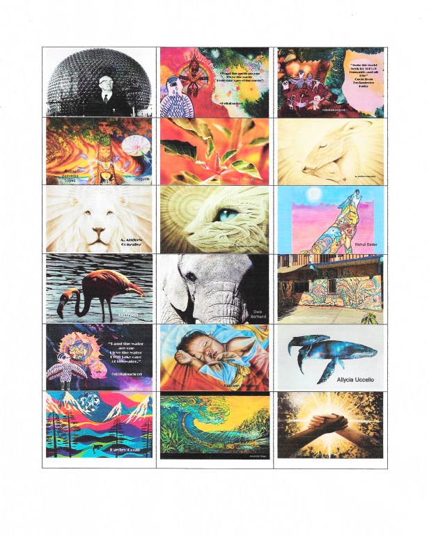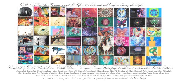 A group of 12 artists from the program I am now part of the Design Science Studio wanted to be involved. Many other Visionary artists that are Facebook and Instagram friends also said they wanted to add a piece of art. Before I knew it there was 30 artists from 15 different countries. So three weeks later the Quilt (Collage) evolved.
