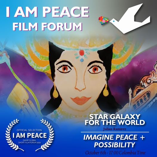 A Watch Party was hosted by Della Burford in Canada zia zoom to learn more about The Film Forum taking called l “I AM PEACE” Oct 3-7th 2022 in Colombia. People had a chance to meet the filmmaker Julian Ramirez (3-D and Designer) who created the animated film of Dellas’ book “Star Galaxy for the World.” The Film Forum’s Intent is for Collaborative Activities, Youth Activism, and Innovative partnerships. The Youth Activism component featured by many young filmmakers and one was Canadian Kasha Slavner Sequoia who presented “Sunrise Storytellers”.