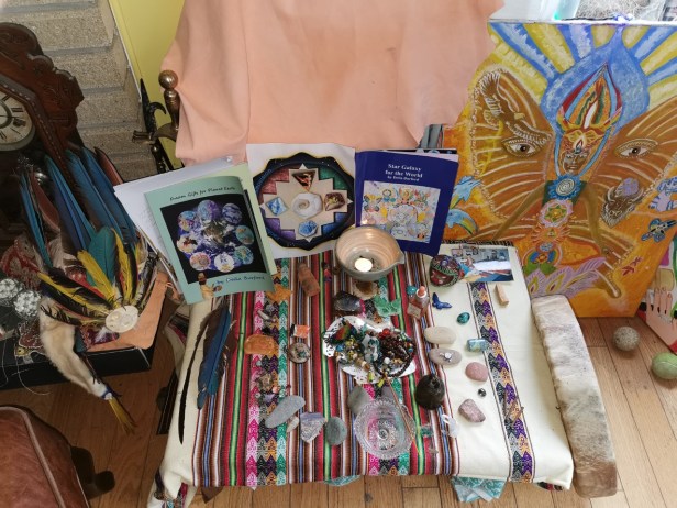 Della Burford ‘s portable Peruvian Mesa with Stone Mandala for Summer Solstice.