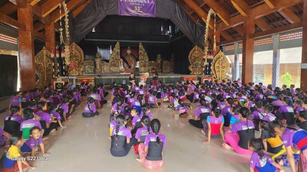 Star Galaxy for the World with I Made Sidia AT Paripurna is a collaboration to share values and goals using art activism. I Made Sidia welcomed us the first morning .Each child (230) was gifted their Dodoland Bird helmet to fly in their imaginations, dreams and to play in. The Storytellers will represent an important theme.. like Gratitude, Kindness, Peace, Creativity and Positive Change. While the story is being told two students dance in a traditional dance style to the themes and sign the magic words. As we go thru the story the energy field is raised and regenerated . A Wise one quotes one of Buckminster Fuller inspired quotes and they remind us of that we are part of the Whole. It goes not only into the inner depth connection of Being to find ones better self but to Becoming something greater for a better world.