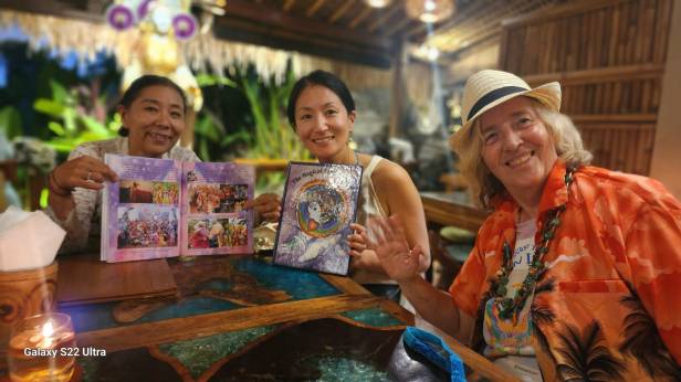 Meeting amazing people has been part of our month here. We got a message from Starseed Sofuku who is from Japan. She had been told by the Producer Ruu Ruu we were in Bali and viola we finally got to meet. Ruu Ruu has done a Production of “Magical Rainbow” which is the book “Magical Earth Secrets”.”