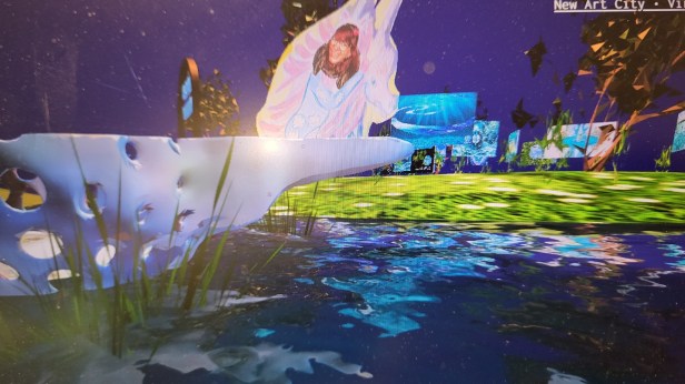There is also in New Art City the Pegasus Unicorn Ship which had aboard various dreamers from the Design Science Studio who attended the Fireside and wanted to be aboard. Iain McIntosh and his creative skills in World Building has made the two ships possible. The beautiful background in Mora was inspired by Neha’s luminous trees and Julian Ramirez’s World Building. .